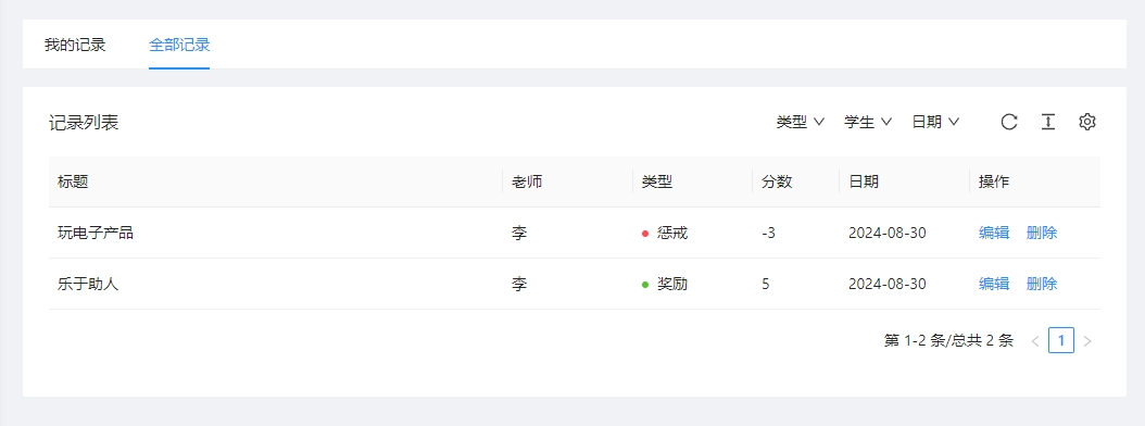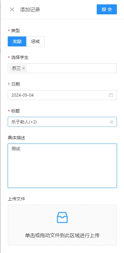 对学生的行为进行记录,包括奖励和惩罚,进行加、扣分会影响德育分数,同时记录也会展示在成长手册中。首先要对德育基础设置和考核项进行设置。